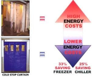- Cold stop curtains have insulation properties far greater than plastic strips resulting in energy reductions. Floor ice, and its associated hazards are minimized.